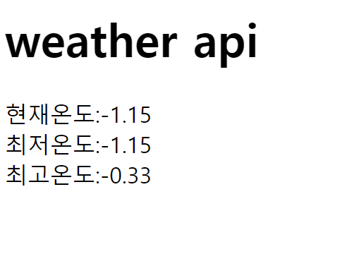 openweatherapi를 활용하여 날씨정보를 WEB페이지에 구현해보았다.