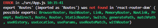 React) export 'Routes' (imported as 'Routes') was not found in 'react-router-dom'