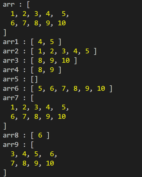 - 배열의 길이와 같거나 큰 수를 지정한 경우 : 빈 배열을 반환한다.